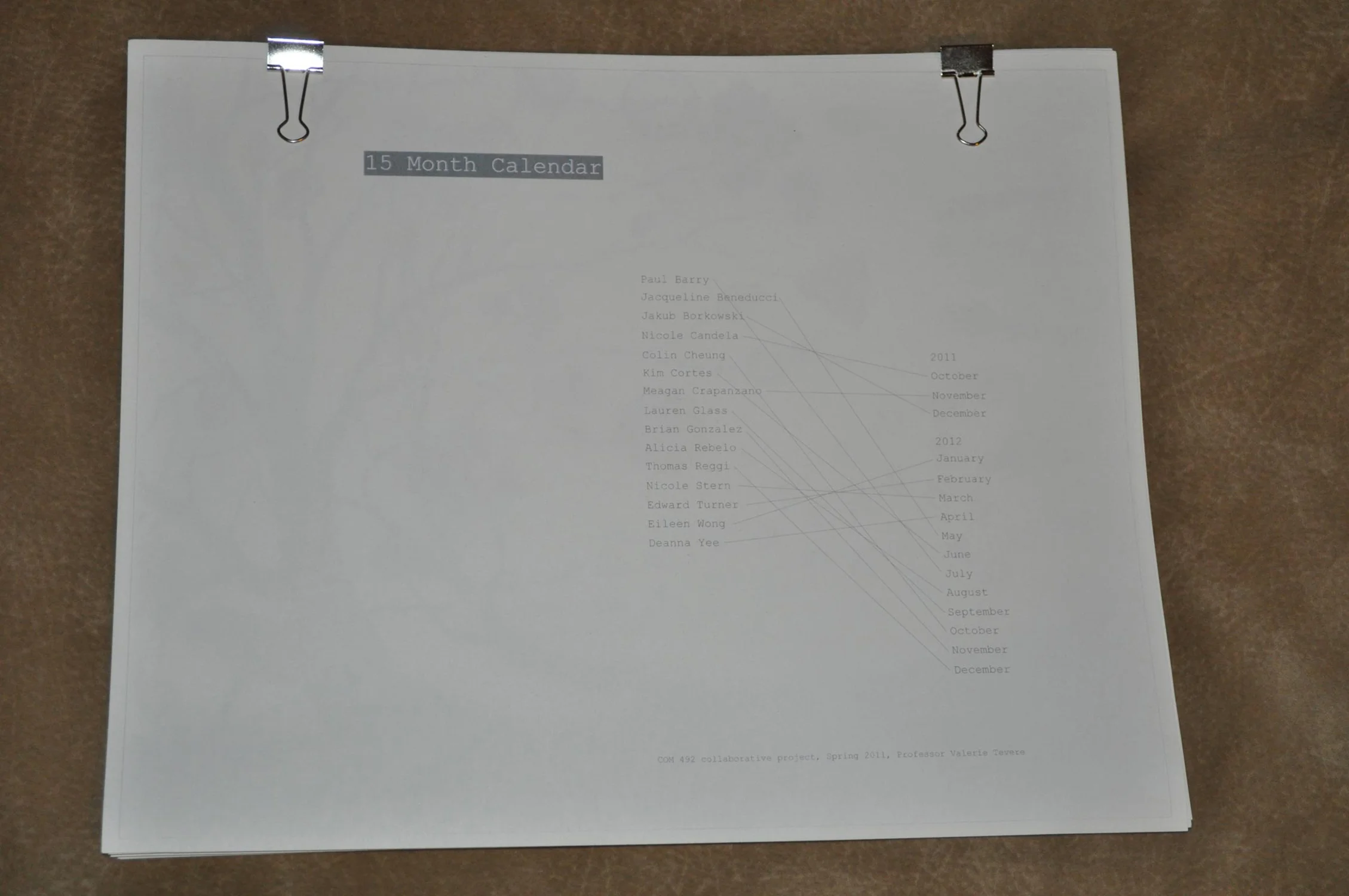 This is a collaborative project with me and my class mates, We created a unique calendar for the year of 2012 each doing our own month in the way we see it.